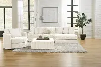 Generously scaled, the 2-piece chaise sectional is covered in a plush fabric, featuring a breezy and versatile ivory color with horizontal channeling. Supportive cushions with a sink-right-in feel and a spacious, roomy design make unwinding hard to resist.