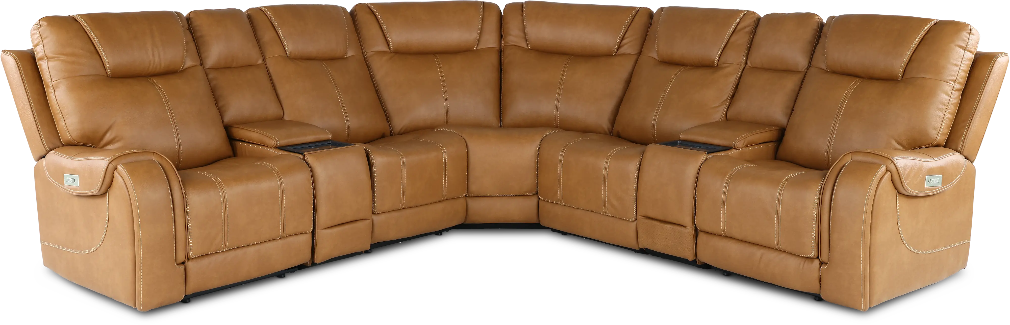 Transform your living space with the Conway Saddle Brown 7-Piece Power Reclining Sectional!