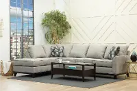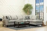 The Emerson gray sectional is hard to resist with its generous dimensions and approachable vibe!