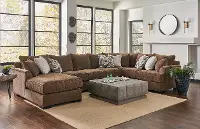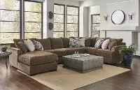 The sturdy upholstery and spacious layout make it perfect for hosting friends or family time. With its inviting look and practical design, including a right-facing sectional sofa, this brown couch with chaise is an ideal choice for those seeking both style and comfort in their living space.