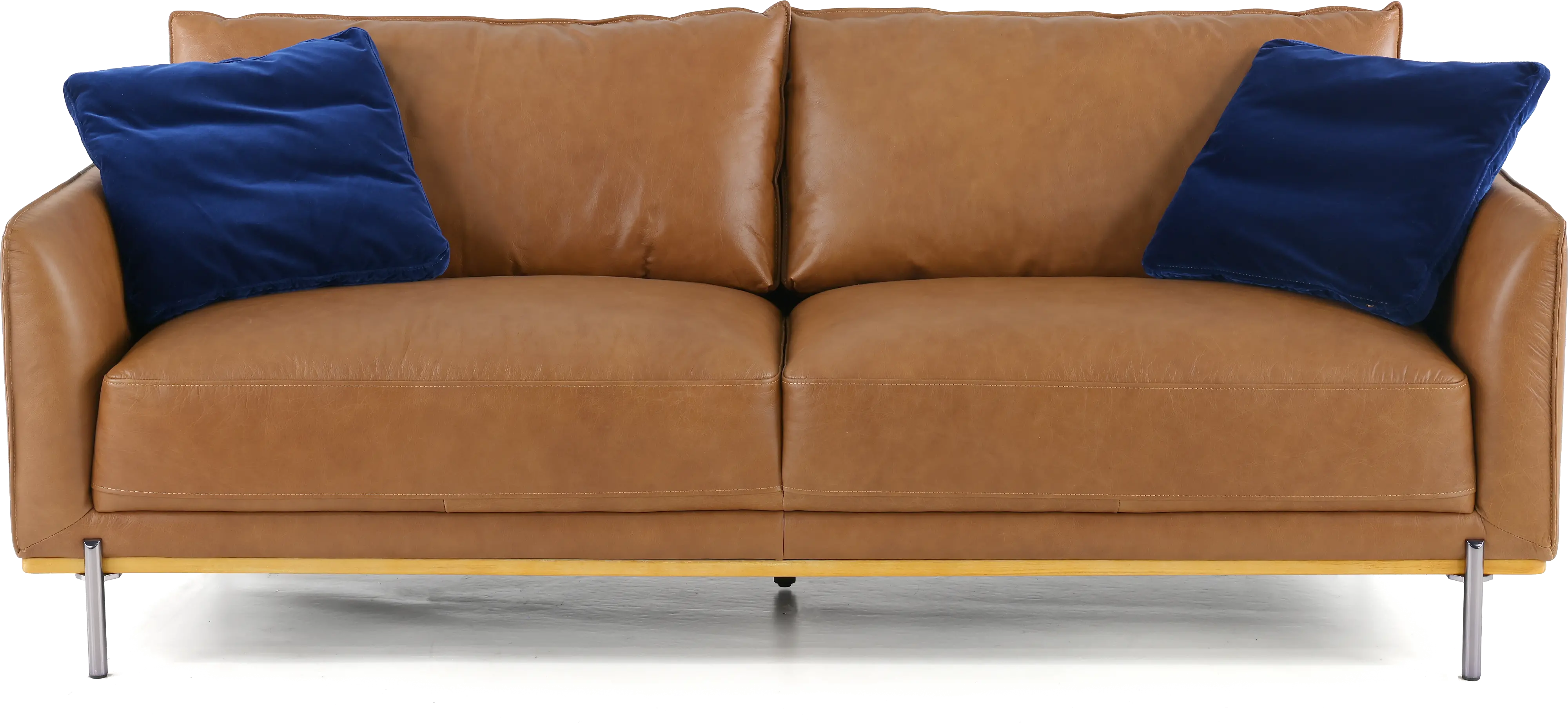 Marseille Mid Century Modern Camel Brown Leather Sofa