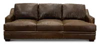Its clean silhouette is enhanced by sleek track arms and nail-head detailing along the base. The sofa is upholstered in an ancient brown full top grain aniline leather that offers a crackle effect that will deepen in character over time. Its true 8-way hand tied coil spring construction provides more balance for comfortable seating, while genuine down-blend seat cushions makes lounging hard to resist! You'll love how effortlessly the Antique brown leather collection will enhance your existing furniture pieces, creating a stylish, comfortable, and ideal gathering place for your family and friends.