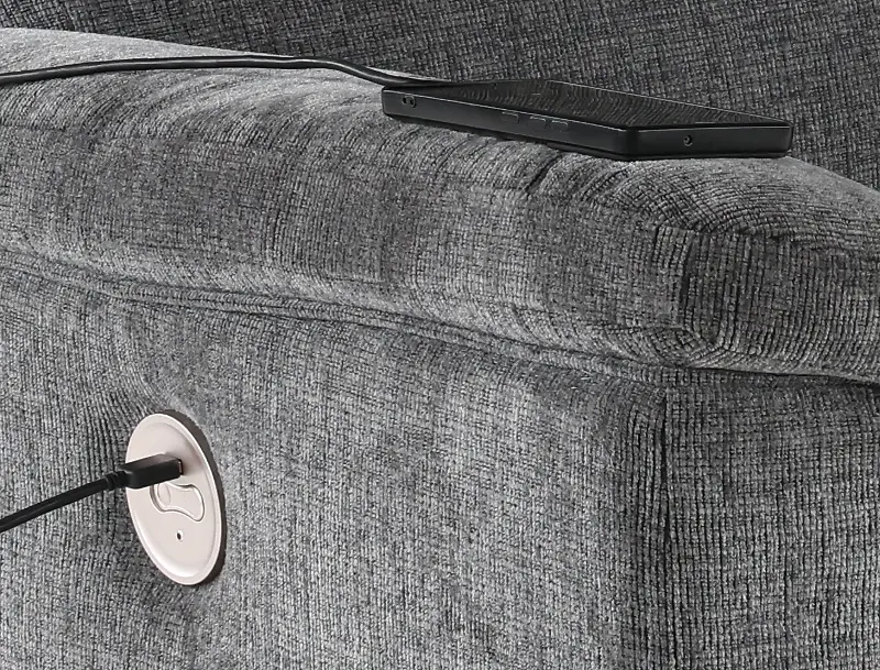 This sofa offers power reclining end seats, allowing you to relax with ease. The durable polyester micro chenille upholstery in a stylish dark gray finish ensures both longevity and a modern aesthetic. With built-in USB charging ports, you can conveniently power your phone or tablet while unwinding. Experience the premium features of the Barnsana collection.