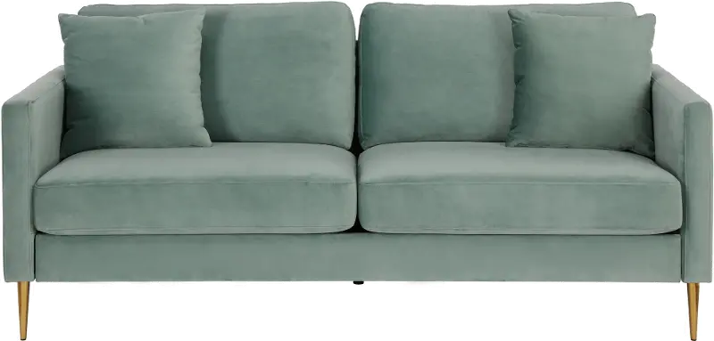 It features thin track arms, gold metal legs, and a modern silhouette that will enhance any living space. Includes 2 toss accent pillows.