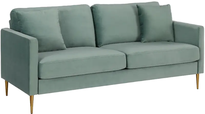 The super-chic Highland collection apartment sofa is upholstered in a green velvet fabric and features a simplistic and sophisticated design.