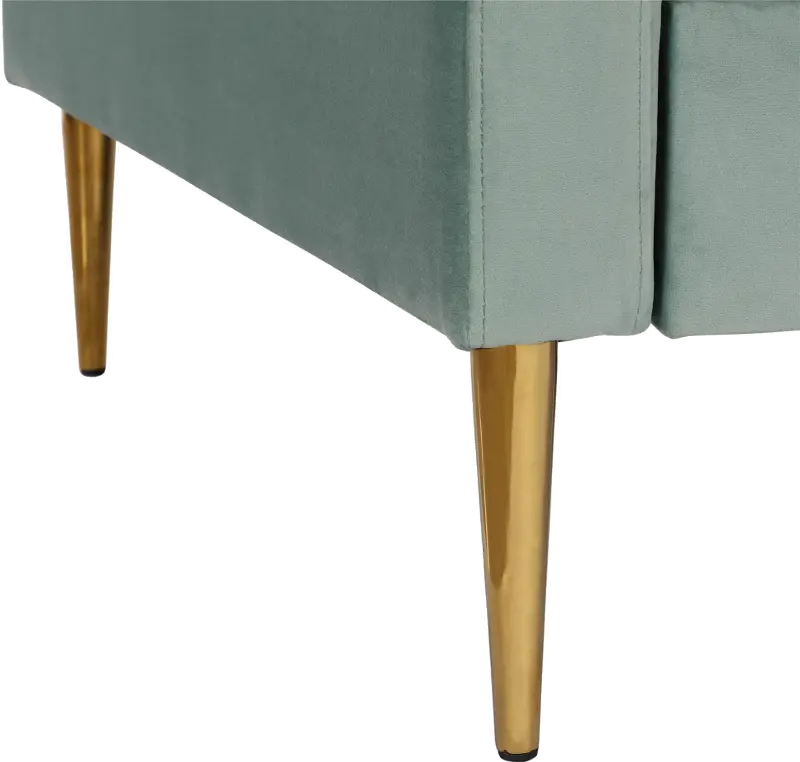 - Sturdy plywood construction with 6.5" solid metal gold finish legs and thin track arms make this couch the perfect small space accent piece in your living room, guest room, office or den.