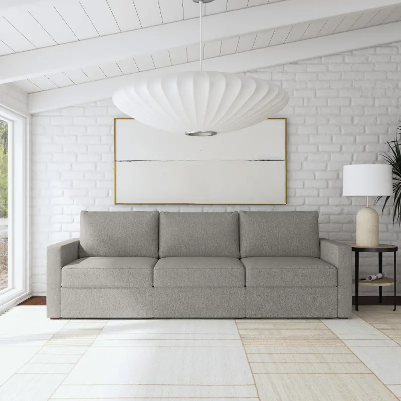 Built with Blue Steel Spring technology and sustainable stain-resistant performance fabric, the Flex sofa provides a deep-seated, blissful comfort and long-lasting durability. And assembly is a breeze with a patented J-bracket “no-tool” method that takes minutes, rather than hours.