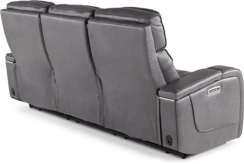 Designed for modern living, this sofa features plush cushions, smooth power reclining, and built-in audio technology to enhance your relaxation. The neutral graphite-colored upholstery complements a variety of home décor styles, while the integrated cup holders and storage keep essentials within reach. Whether you're unwinding after a long day or hosting a movie night, this sofa delivers premium comfort and convenience. Upgrade your living space with a stylish, tech-savvy seating solution built for everyday enjoyment.
