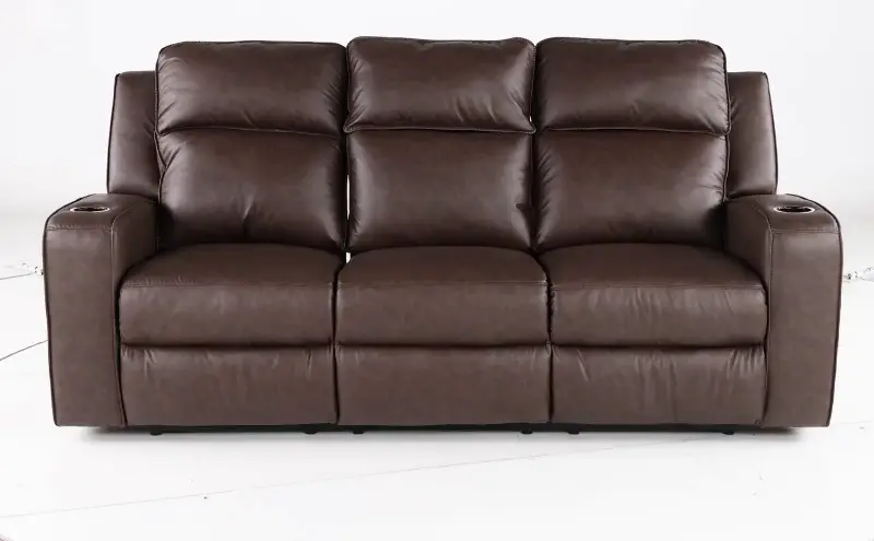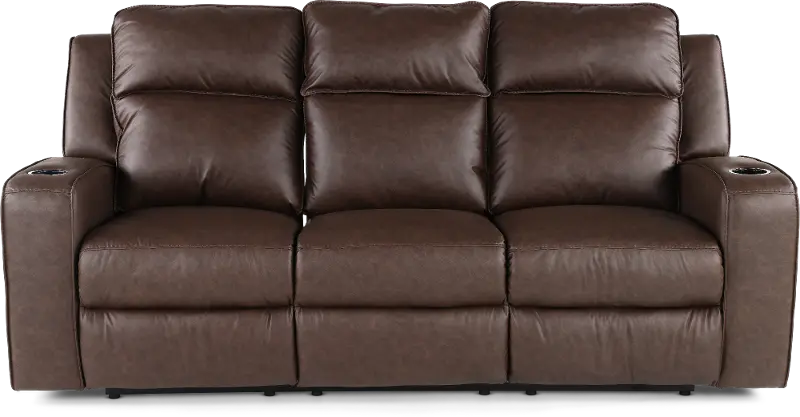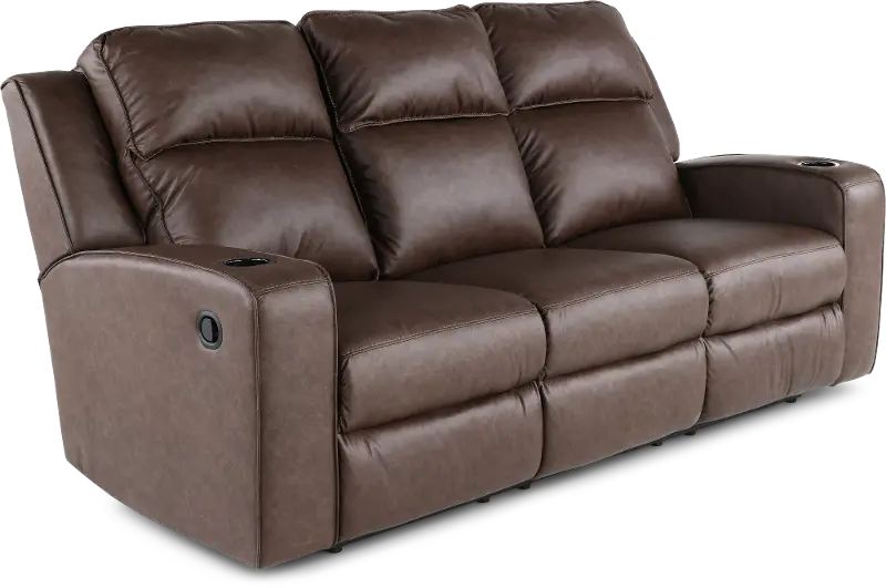 Upholstered in faux leather with contrast stitching, this sofa has a versatile style that would work well in many living rooms. This sofa features manual reclining end seats and a drop-down tray table with cupholders for added convenience. Elevate your living space with the stylish and functional Lavenhorne Collection.