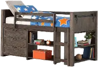 Offered by RC Willey, it features solid wood construction and is finished in a brushed shadow finish that makes it a great addition to any décor. It can be used on its own or as an addition to the matching twin low loft bed (sold separately).