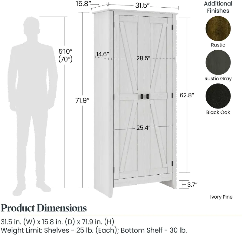 | Dimensions | 31.5"W x 15.67"D x 71.85"H |