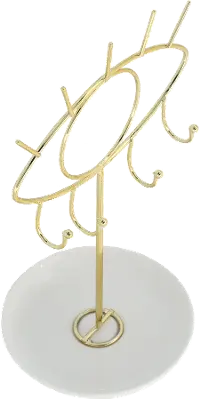 Gold and white work together to create the perfect modern and glam accessory. Hang your favorite necklaces from the hooks and you can even place earrings in the bottom.