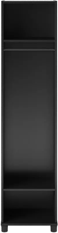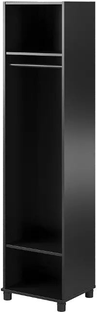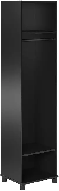 Made of laminated particleboard with a sleek black finish, the Camberly Mudroom Cabinet is both attractive and affordable. The interior of this Cabinet features 1 lower adjustable shelf for shoes or bins, a middle shelf perfect for backpacks or purses, a coat rack, and an upper shelf for hats, gloves, and other essentials. Perfect for back-to-school to keep coats and backpacks in one place for a smooth, no-fuss morning routine. Limited space? The Camberly Mudroom Cabinet works great in the garage or basement as well. With adjustable feet, keeping your cabinet level on uneven floors is simple. A wall anchor kit is included to secure the cabinet to the wall and prevent tipping injuries. Use this piece as a stand-alone item, or combine it with additional Systembuild Evolution Camberly storage items to create the perfect storage solution for your home.