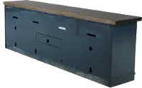 This 92 inch TV Stand from RC Willey features a denim blue finish and accommodates the largest flat panel TVs.