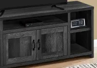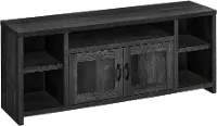 Modern technology finds a rustic home with this modern farmhouse-style TV stand in a black reclaimed wood-look finish.