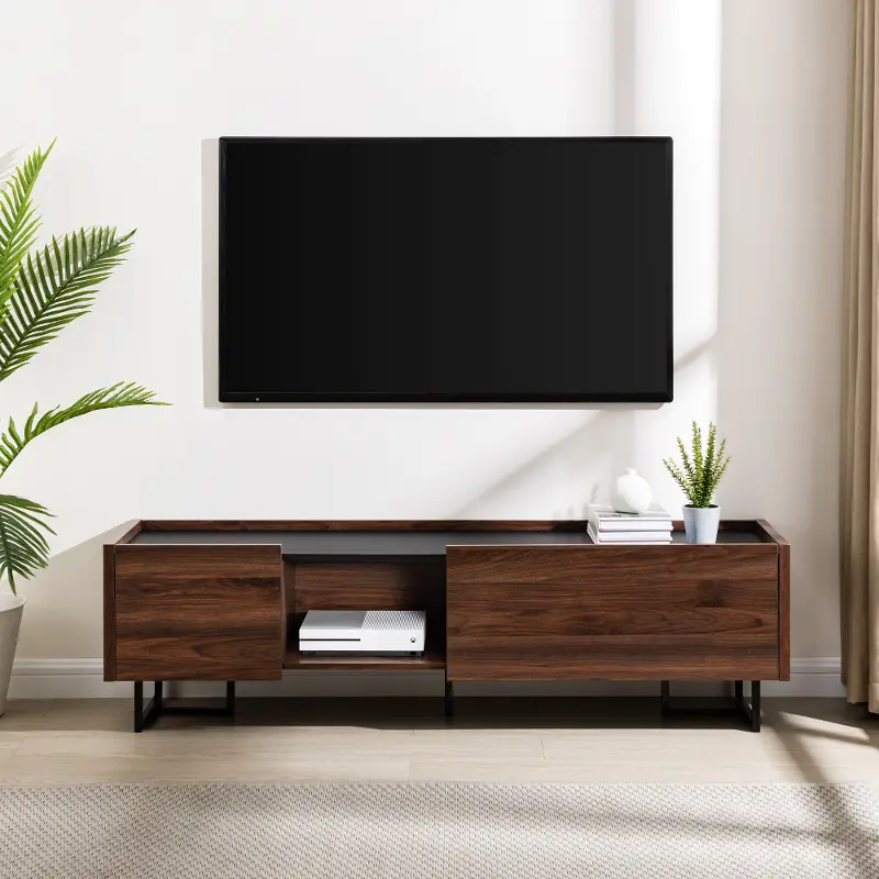 Update your contemporary casa to reflect your minimalist sense of style with this mixed-material TV stand.