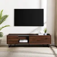 Whether your style is modern, coastal, or traditional, this piece exudes an effortless sense of style with its low profile and stunning laminate, faux marble top. With a cord management port, two storage cubbies, and an open cubby, your media components, gaming consoles, and streaming devices will rest stylishly with plenty of space to spare. The drop-down door adds a contemporary element to the piece, while its fuss-free silhouette keeps a classic sense of interior style.