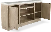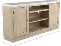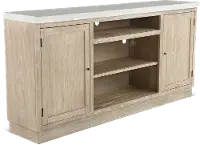 The Rowan 78" TV stand will make a functional and stylish addition to your living room. Made of mahogany solids and veneers, the light gray top and wheat-colored base complement any decor.