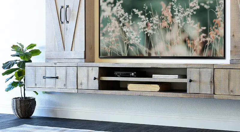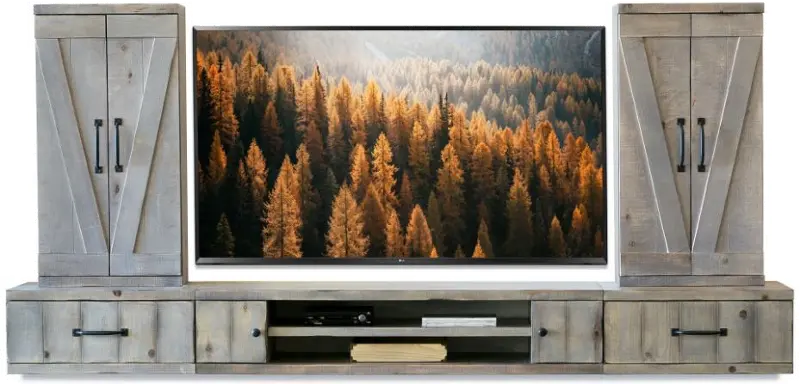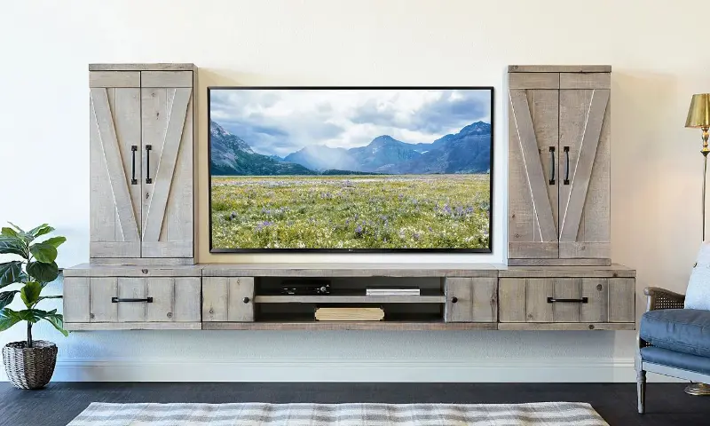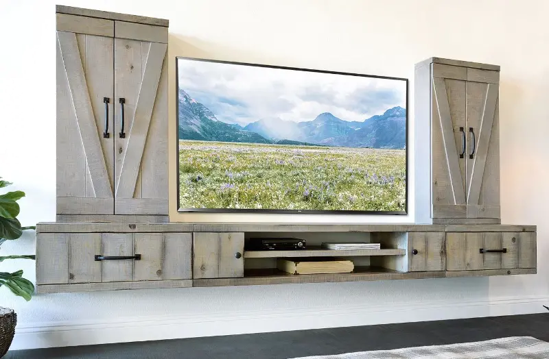 Farmhouse Gray Wall Mounted TV Stand with Modular Barndoor Consoles