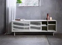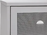 The Veep Gray 63" TV Stand brings a modern industrial look to your living space. Mesh-paneled front doors slide from side to side, offering plenty of storage space with adjustable shelves.