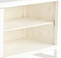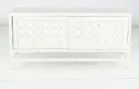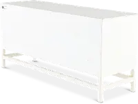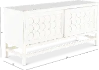 This 64" TV stand has a spacious tabletop that will easily accommodate your flat screen TV, as well as your favorite family pictures and decor. The fresh white color highlights the circle patterns on the door fronts while maintaining a classic style. Two sliding cabinet doors reveal plenty of interior shelving to keep all your media consoles neatly tucked away. Complement this piece with others from the Marabella collection and brighten up your home today!