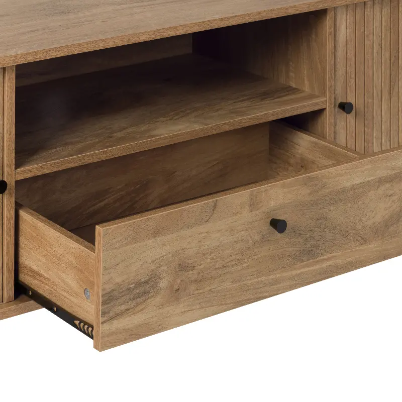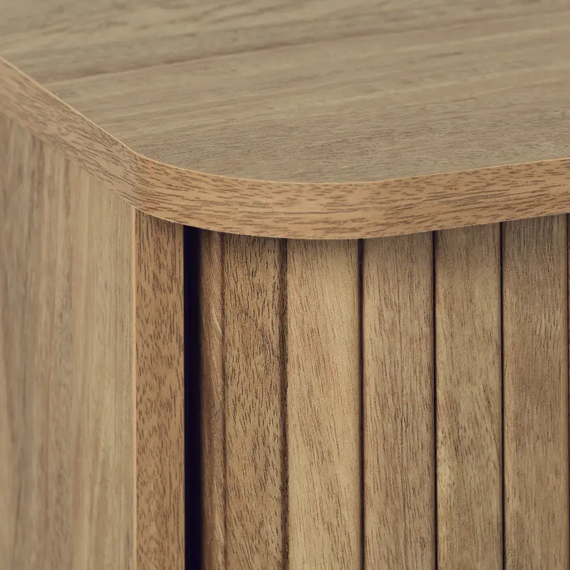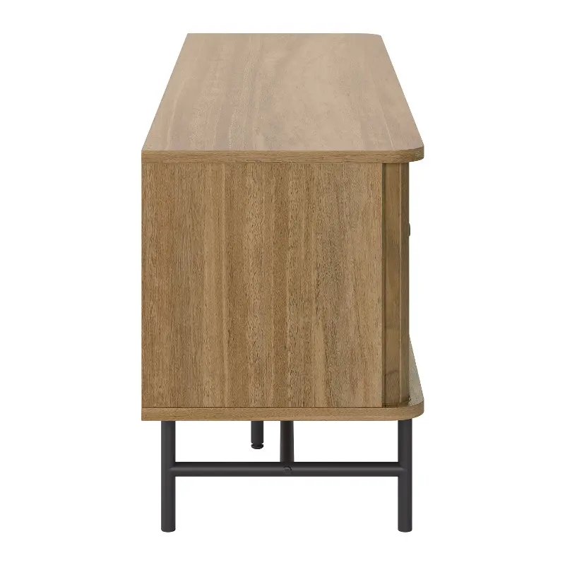 The Hikari TV Stand Media Console combines elegance and functionality with its light wood grain finish and beautifully curved tambour-panelled doors.