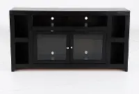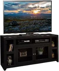 Enjoy style and function with the Skyline Black 65" TV Stand! Featuring space for a sound bar and other open storage, you will have all the storage space you need for your media components, gaming devices, and other electronic accessories.