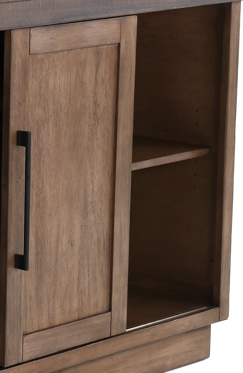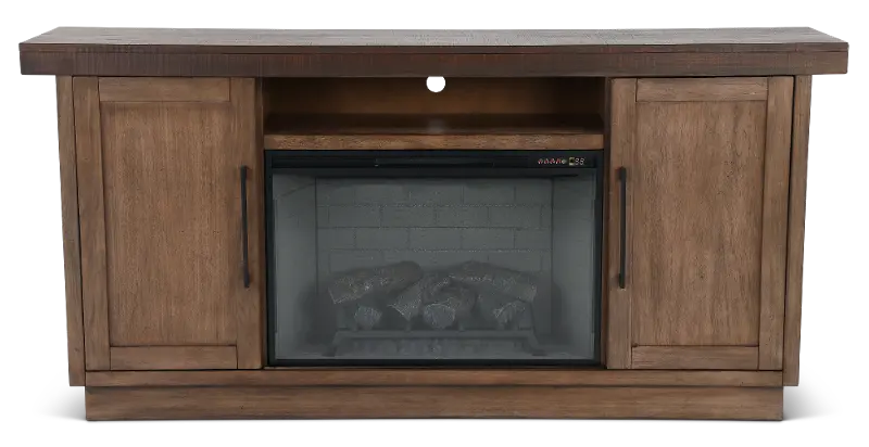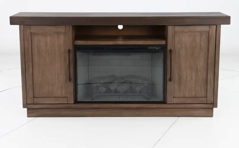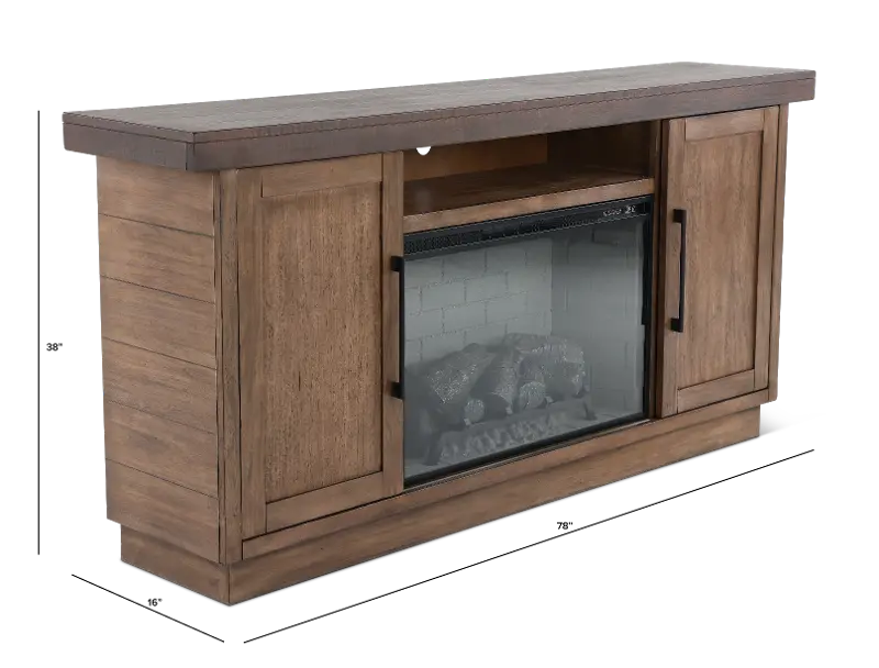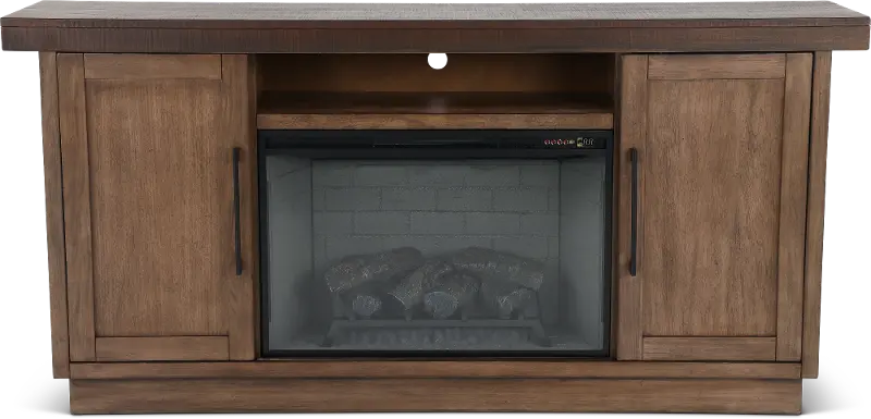 Sturdily crafted from mahogany solids and veneers, this TV stand offers a two-tone brown finish that will effortlessly complement a range of decorating tastes. The included fireplace insert can easily warm spaces up to 1000 square feet.