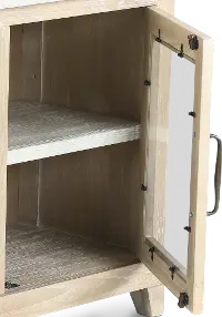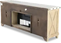 This 74" TV stand invites a relaxing feel with its wheat-colored base and light gray top while being accented by darker hardware for contrast. Turn on its infrared quartz heater for glowing heat on chilly nights. Two glass-front cabinets maximize storage space with fixed shelves for all your books, media, and gaming consoles. Add other pieces from this collection to pull it all together.