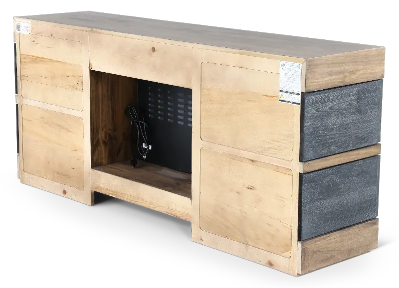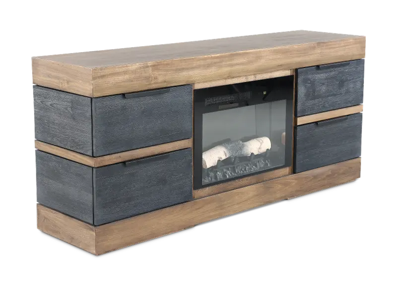 Crafted from solid, lightly distressed wood, the Tuxedo 70" Fireplace TV stand will bring major style and warmth into your home.