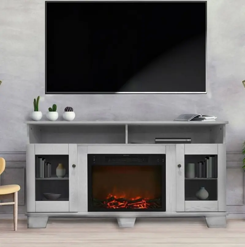RC Willey helps you enjoy comfortable warmth anywhere in your home with this crisp white 60 inch fireplace TV stand.