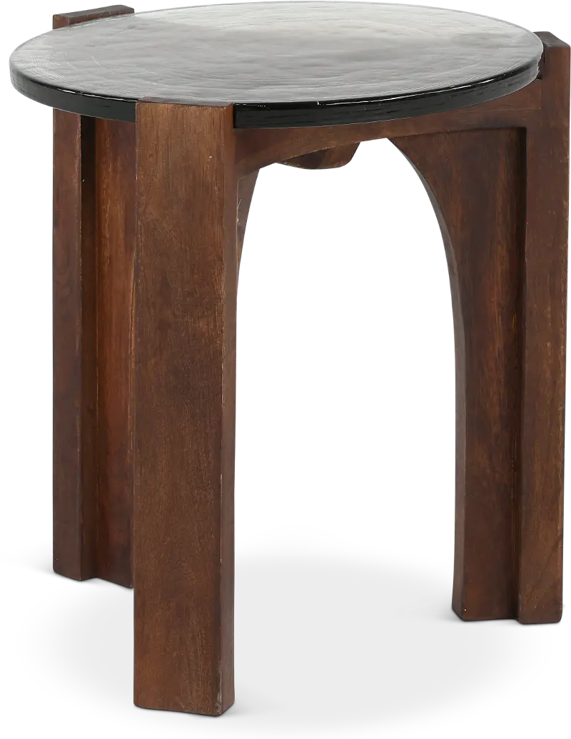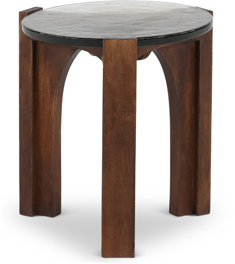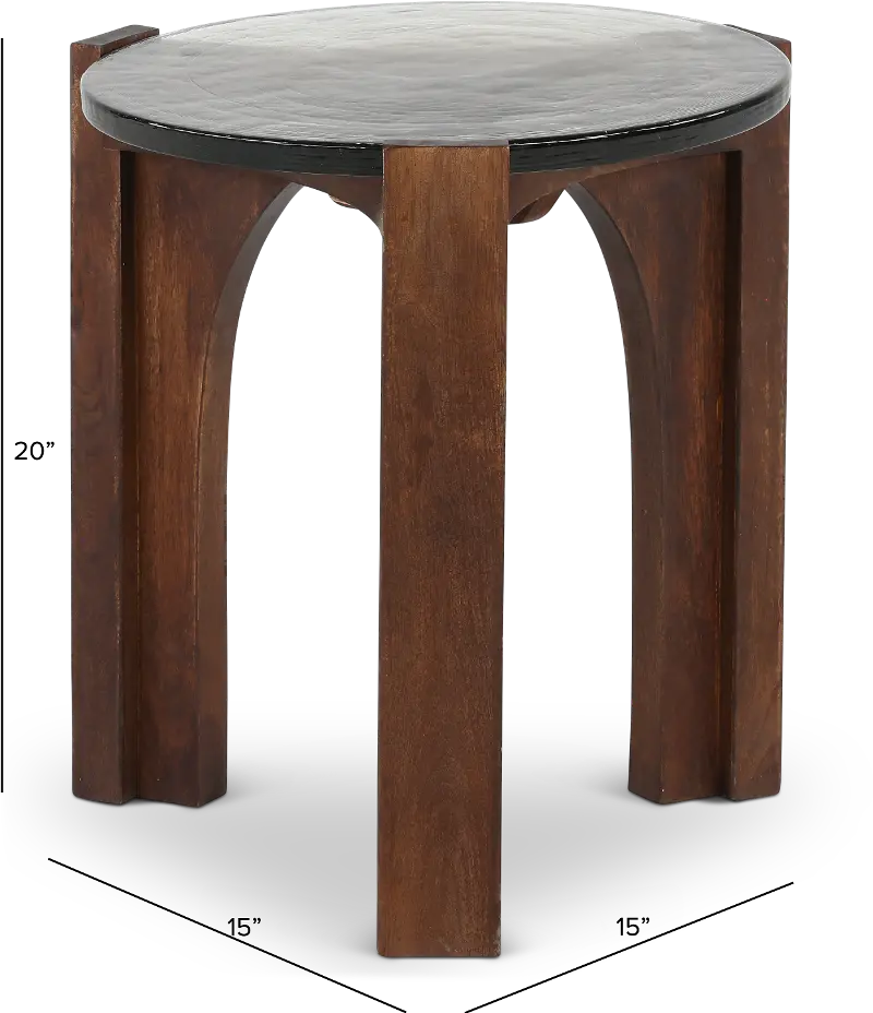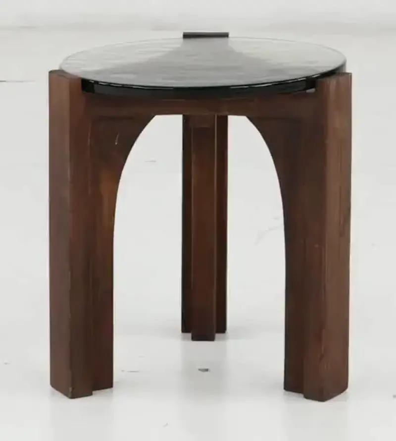 The chiseled style and rich brown color of the legs and frame create sturdy support while complementing any interior decor. The wavy glass table top brings a unique and unexpected look, while the table's smooth round shape ties everything together. Pair with its matching coffee table to complete the look, and make it your favorite room in the house.