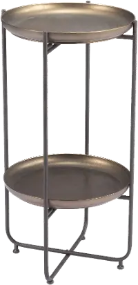 Invite the San Bronze Accent Table in to do the trick. Its unique two-tiered design showcases a bronze color steel frame and trays, perfect for displaying decor and magazines. This fun table works in any space and brings plenty of inspiration.