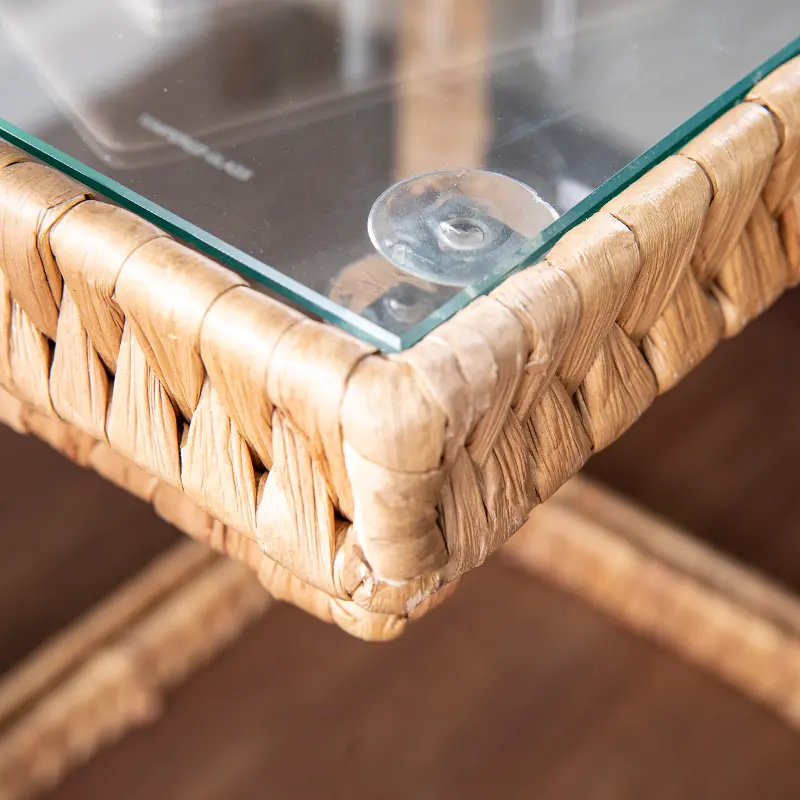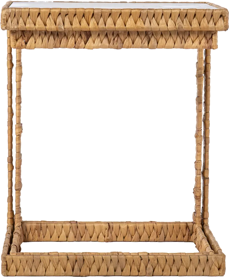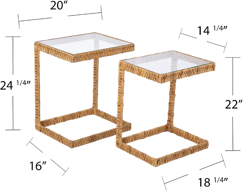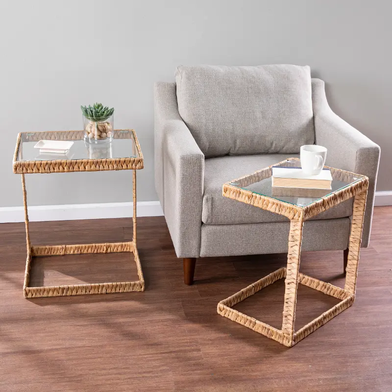 Woven water hyacinth creates a coastal feel while the minimalist design keeps your living space uncluttered. Tables conveniently store nested together when you need to save space or easily pull apart when you need an extra tabletop. Add a natural element to your home when you place these glass-top nesting tables in your living room or open concept living space.