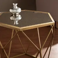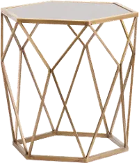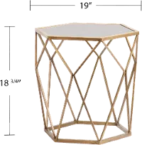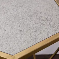 The revealing, gold design creates a captivating shadow effect, while the antique mirrored hexagonal crown enhances an elegant lamp or slim vase. In your living room, dining room, or home office, this chic accent table basks your home in tantalizing panache.