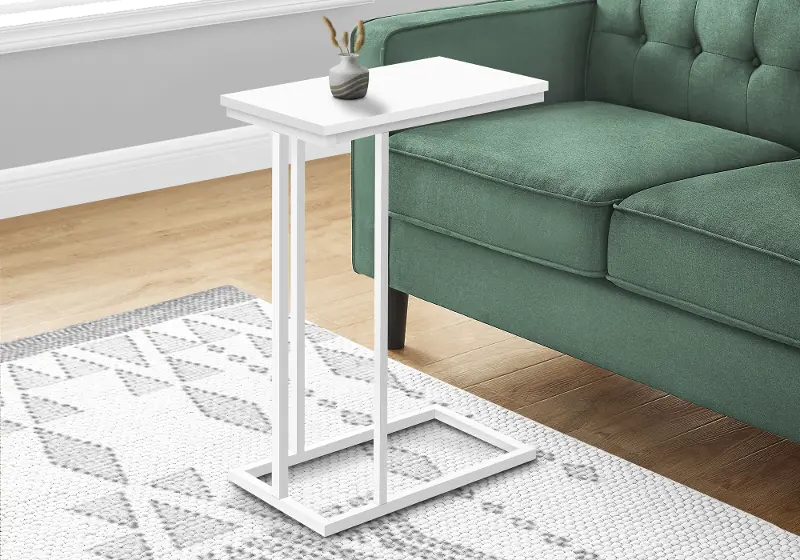 - Bring a modern look to your living room, office space, family room or bedroom with this stylish White laminate C-shaped side accent table