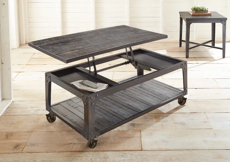 When you add this industrial tobacco brown barn wood lift top coffee table to your home, you will instantly fall in love with the splash of rustic style that it adds.