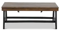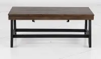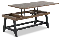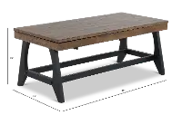The honey tabletop opens with a lift top to reveal hidden storage, while the black base contrasts straight framing with carved, rounded legs. Place this in your living room for a pop of character in your home design!