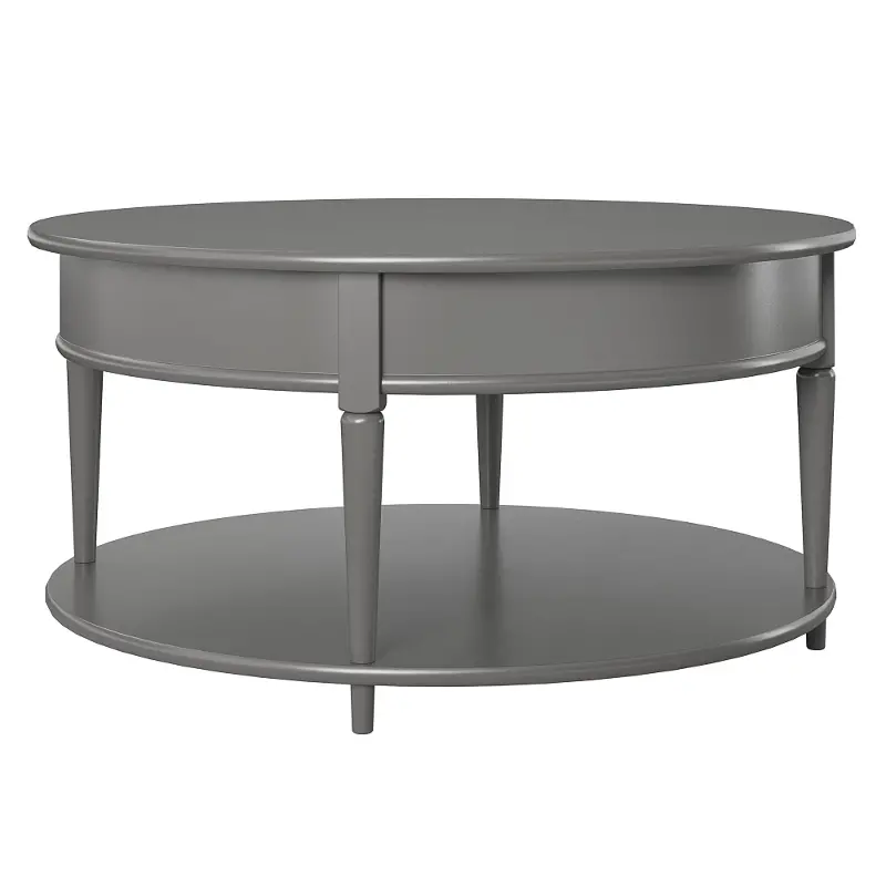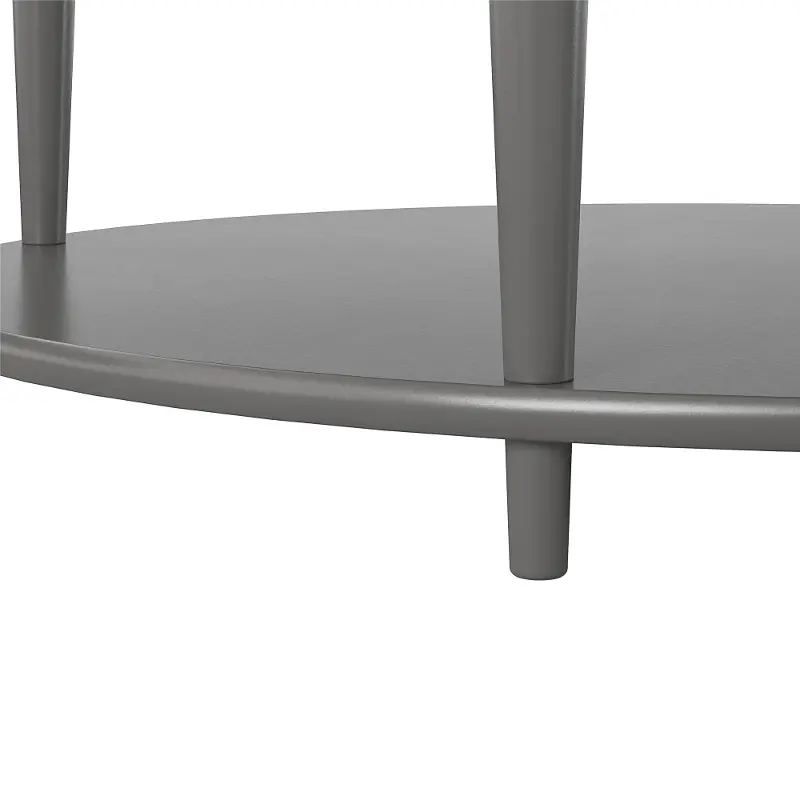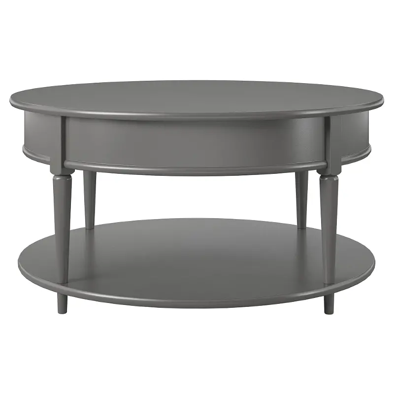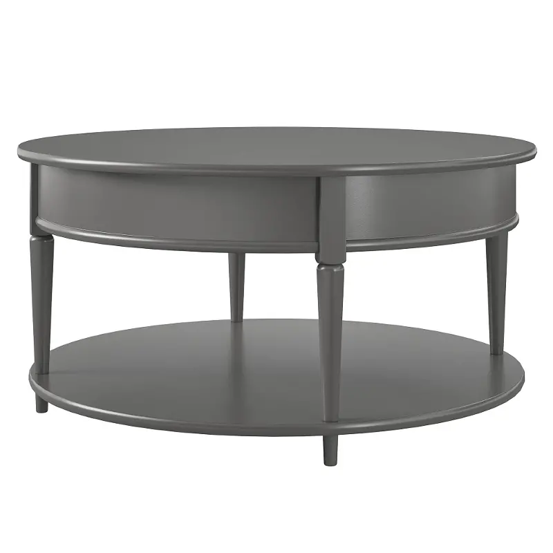 The classic elegance of the rounded top and tapered legs create a vintage yet sophisticated feel perfect for any décor. This rounded coffee table features a spacious lower shelf, perfect for books, magazines, or even decorative items to cozy up the room. Made from sturdy painted MDF, this piece is as durable as it is affordable. Complete the look with the entire Aurora collection!