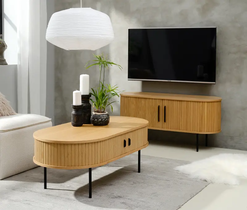 Invite design and style into your home with the Nola Natural Oak Coffee Table with Hidden Storage.