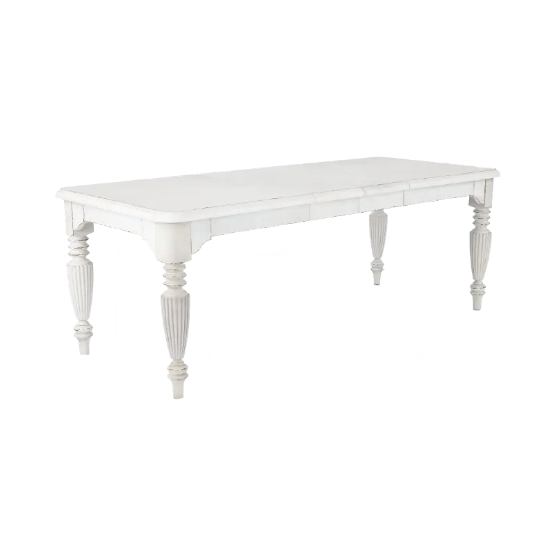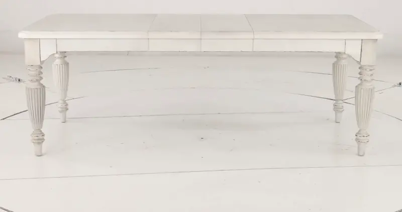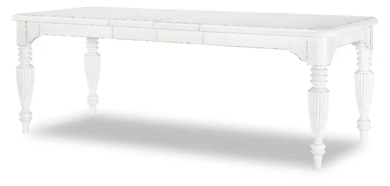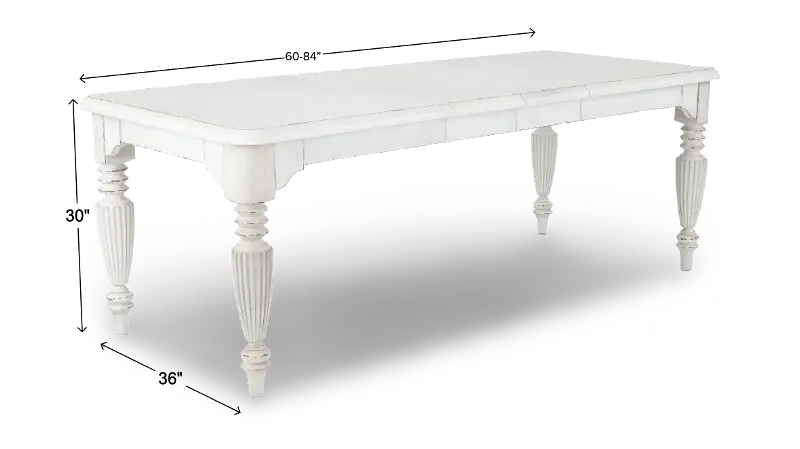 Beautifully crafted and aptly named, this friendship dining table blends a timeless silhouette with inviting comfort. The table includes two 12" leaves, easily expanding its size for cozy friend and family gatherings. The ornately carved table legs add depth and character, while the white picket fence finish has an aged appearance, lending an antique vibe to its versatile, classic appeal.