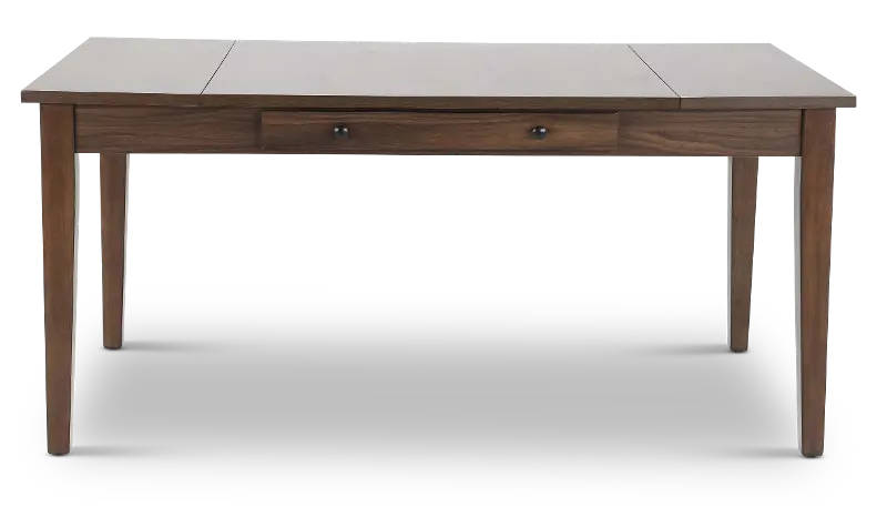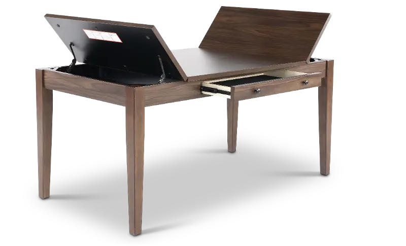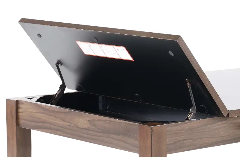 This multi-functional dining table features dual lift-top storage compartments and a side drawer so you can make the most of your space. Sturdily crafted, its clean lines are finished in a deep brown hue that will complement a wide range of decorating tastes.