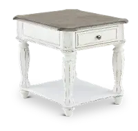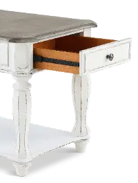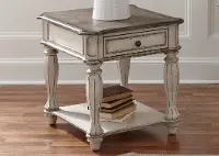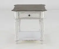 Your favorite antique or collectible will look perfect displayed on this antique white end table from RC Willey.