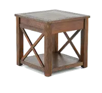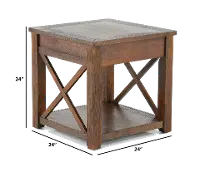 It features a border plank edge with "X" shaped side panels. This table is perfect for your lamp and favorite display pieces.