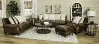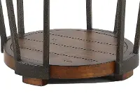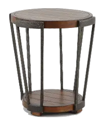 This antique rustic brown round end table features aged iron hardware accents to bring your living room to a whole new level.