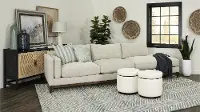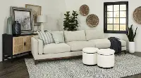 With its simple design, it fits well in any setting with the matching coffee table, sofas, or sectionals. The natural toned cerused finish on knotty elm veneers has been wire brushed for texture and to allow the beautiful glaze to hang up in the grain to enhance the dimensional look and feel of the surfaces.