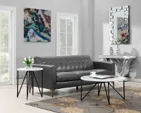 This table has black metal legs and a contemporary look and feel. Tie your room together with the Cedric Collection and make your living space a place you love to be.