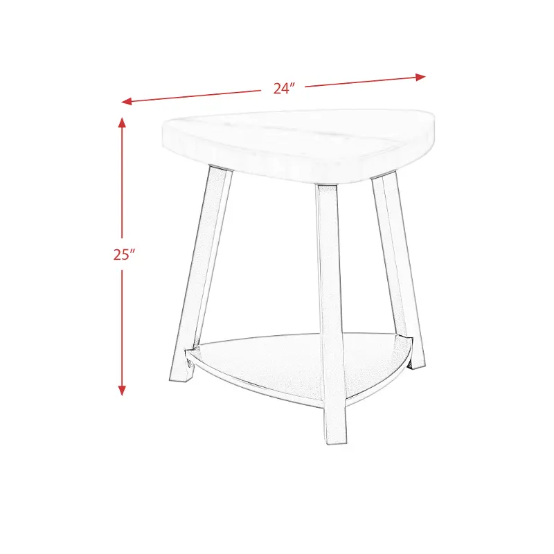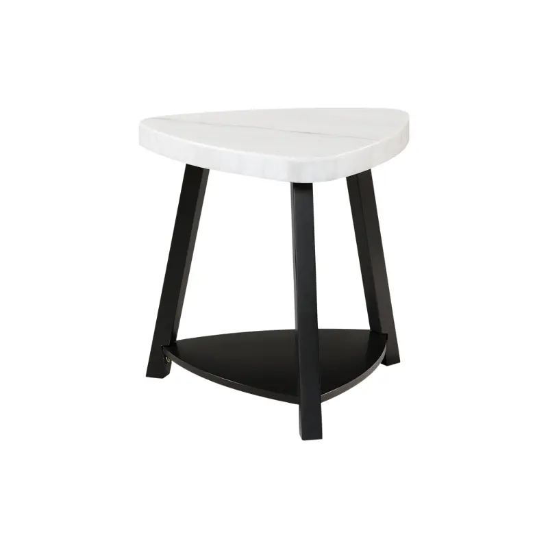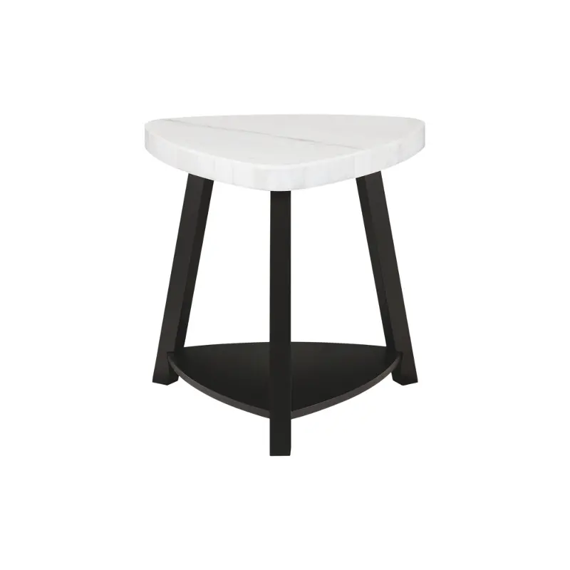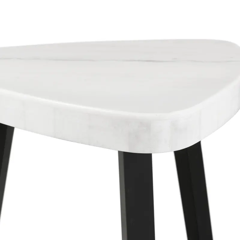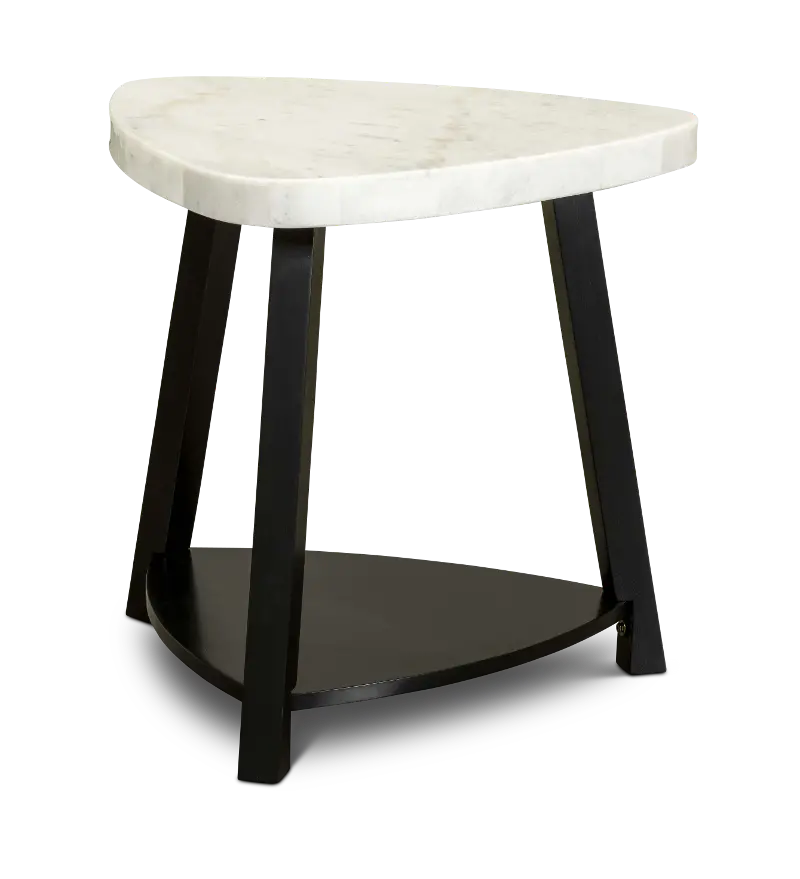 The Trinity Collection white marble end table features a dark wood base and a modern triangle top that looks great in your contemporary home.