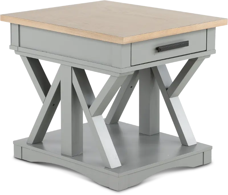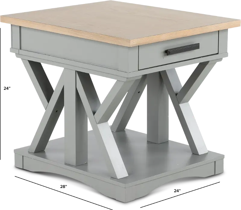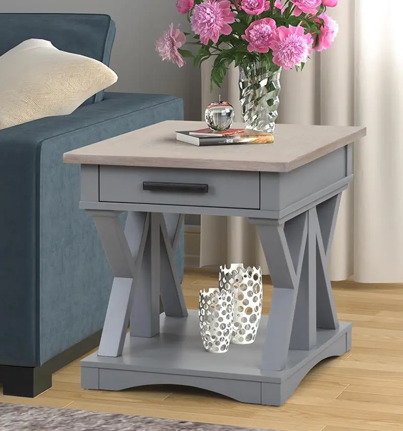 This dove gray country style end table from RC Willey looks right at home in your chic living room.