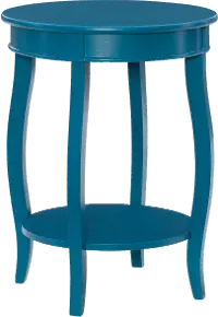 Use it as a bed stand or pair it with a chair or sofa. The round lower shelf offers open storage for gaming controls, books, coasters, and more. Cabriole tapered legs and a rich Teal finish add some elegance, while solid wood legs with an MDF top and panel ensure the table is robust. From bedroom to family room, this table adds function and style wherever placed!